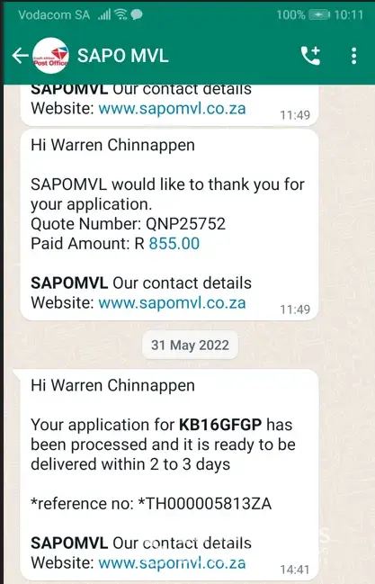 I have submitted and paid for the renewal of both my vehicle licenses on the new online renewal system "https://www.postoffice.co.za/", on the 3rd of March 2022. After payment was made, I was requested to re-submit the copy of my identity document, I promptly did so and marked the request as complete. Since this time the application has been stuck in a Re-Quote status.