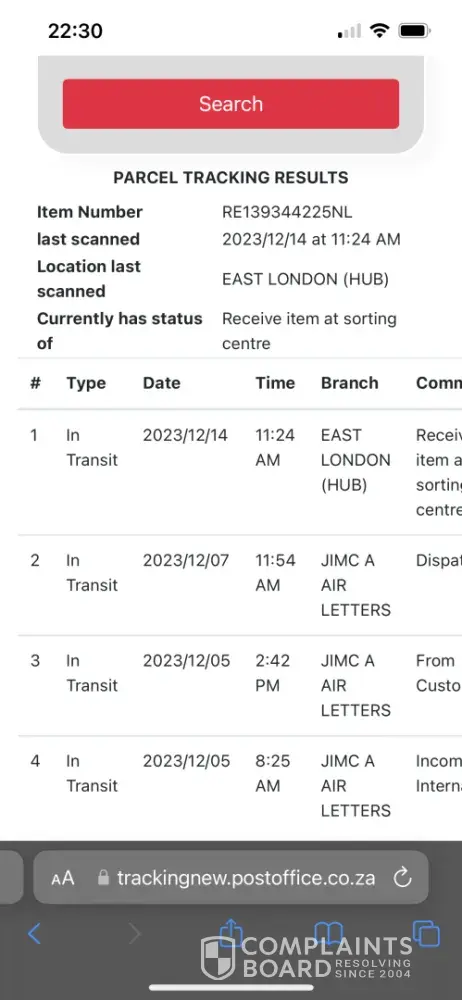 I have had the worst experience with East London post office and Mthatha I ordered a package from the Netherlands in 02/11/23. Package arrived in South Africa, transported and scanned in East London post office Eastern Cape on the 14/12/23 (which is 3 hours from the post office where I am supposed to receive it) but still I have not received it. I have called customer services countless times, I went to Mthatha post office but still received no help or clear answer as to where my package is. This is just unacceptable