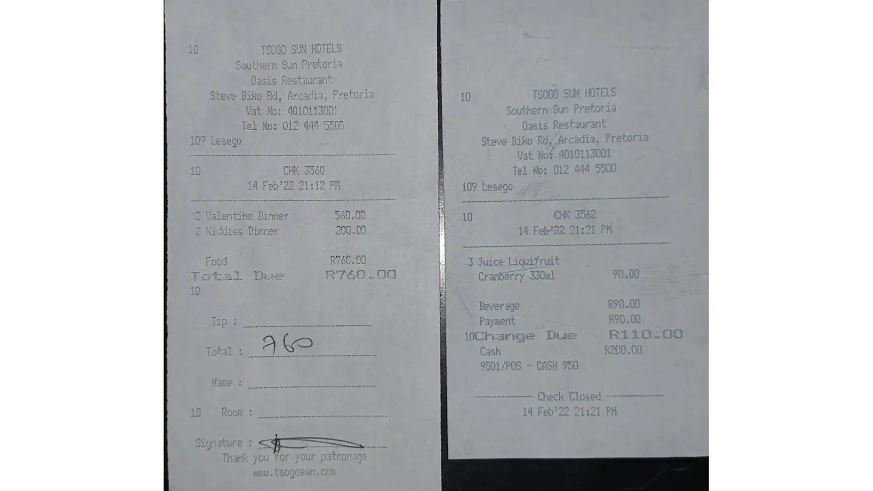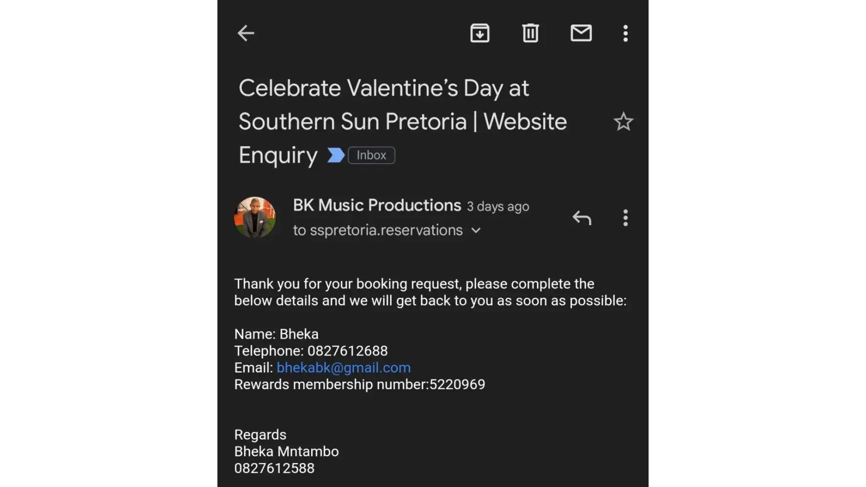 Then I book a Valentine's day dinner on the 14 February 2022 at Southern Sun Pretoria for my family.