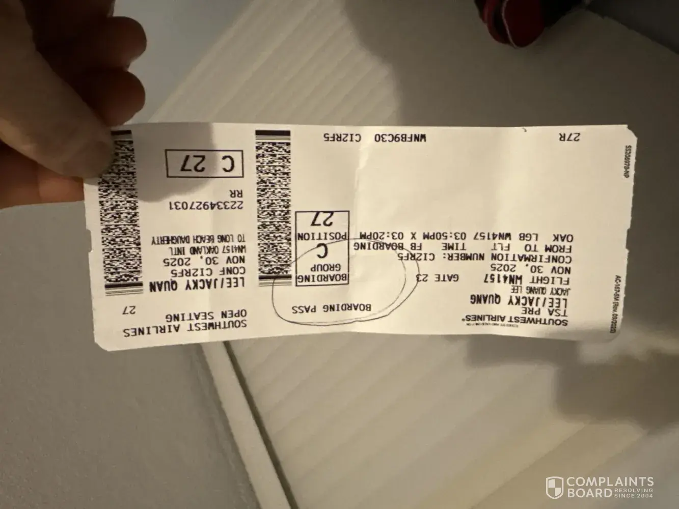 Read full complaintIncorrect boarding pass issue at check-in-flight WN4157 on 11/30/2025