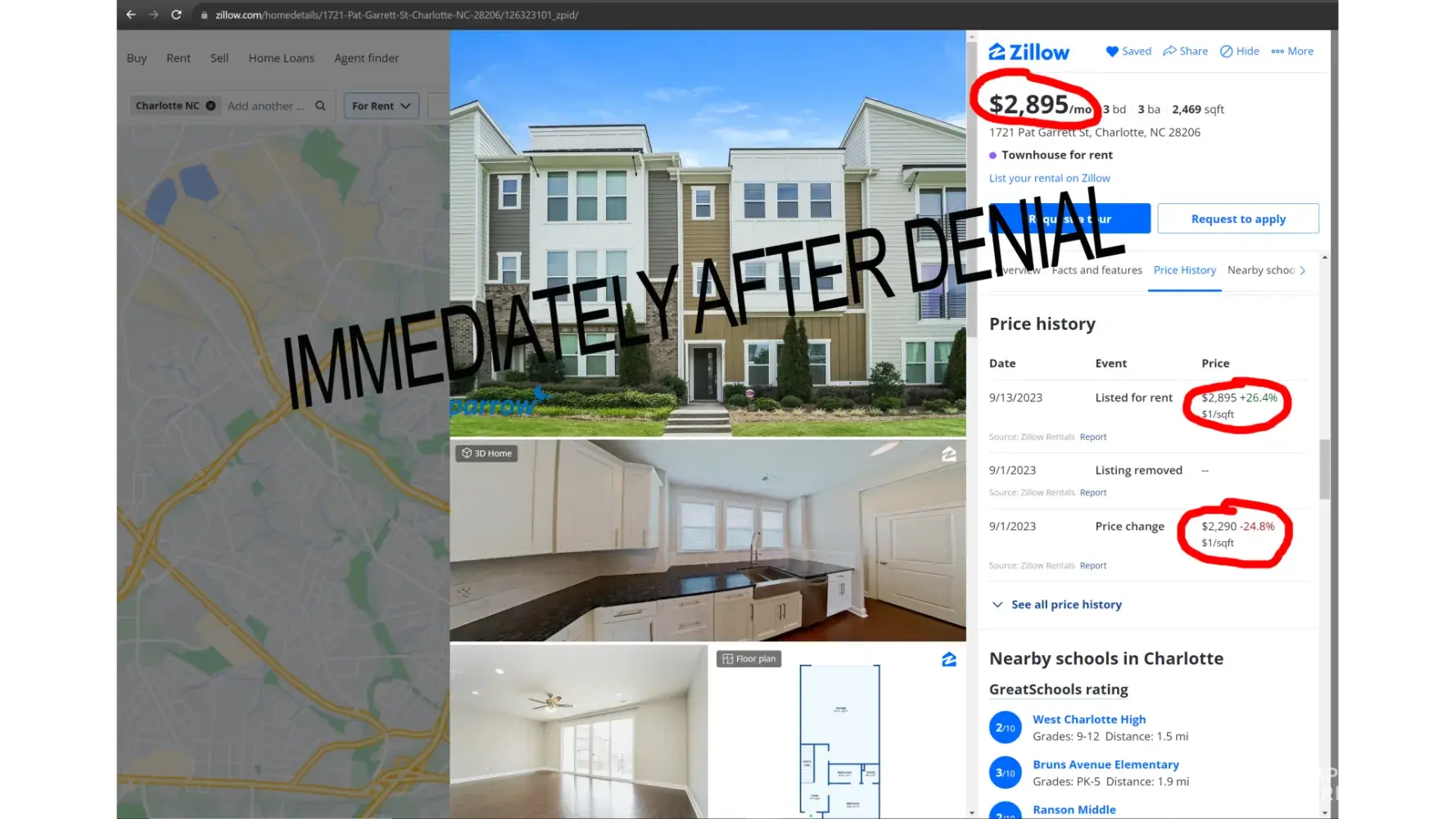 IMMEDIATELY after the denial the price was raised on the property from $2,290 to $2,895. We believe this is shady business practices along with possible breaking housing laws. BTW her house is paid off with no major expenses and all of our combined incomes reaches well over 3x rent. Can easily be approved for BUYING a home else where but not renting from Sparrow?