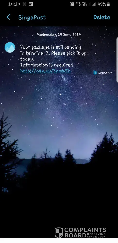 I received a fake message on singpost name stating some parcel in airport to pickup. I am worried it may cause data thief from my mobile so I didnt click that link provided in message.