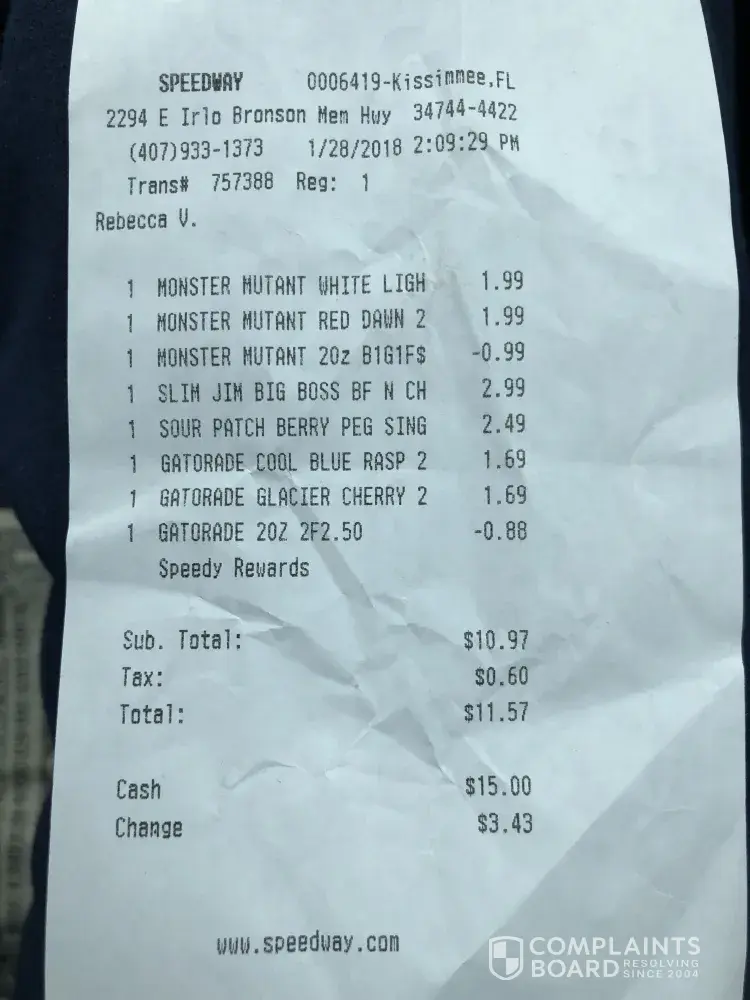 I sent my brother to play my number the numbers was wrong speedway worker didn't know what she was doing my brother said she went and got a manager to do numbers and they where wrong so sent my brother back they wouldn't take them so called over there the managers where very nasty kept hanging up on me telling if I had a problem go somewhere else and play numbers somewhere else this same manager is always rude and I'm sick of it so my autistic brother went back to get his slushy and start harassing my brother telling him it I bring the police I was band and a sale was a sale all in my brothers face I called over there not him they had no business day anything else to my autistic brother scaring him so made police report and taking it to court for harassment