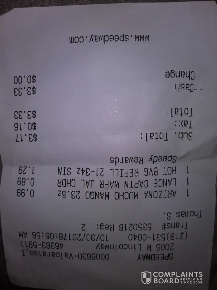 I have the sandwich in a bag witch is in the freezer the manager gave me a receipt and kept the original i had already taken photos before going back to the speedway to approach the manager