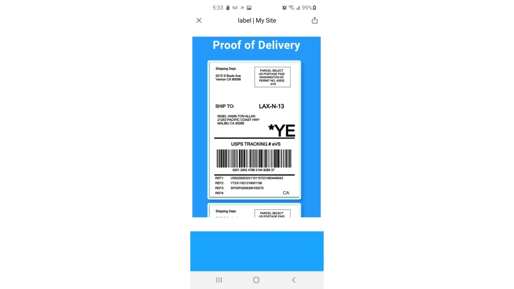 The below picture is the proof of delivery except its not my house...