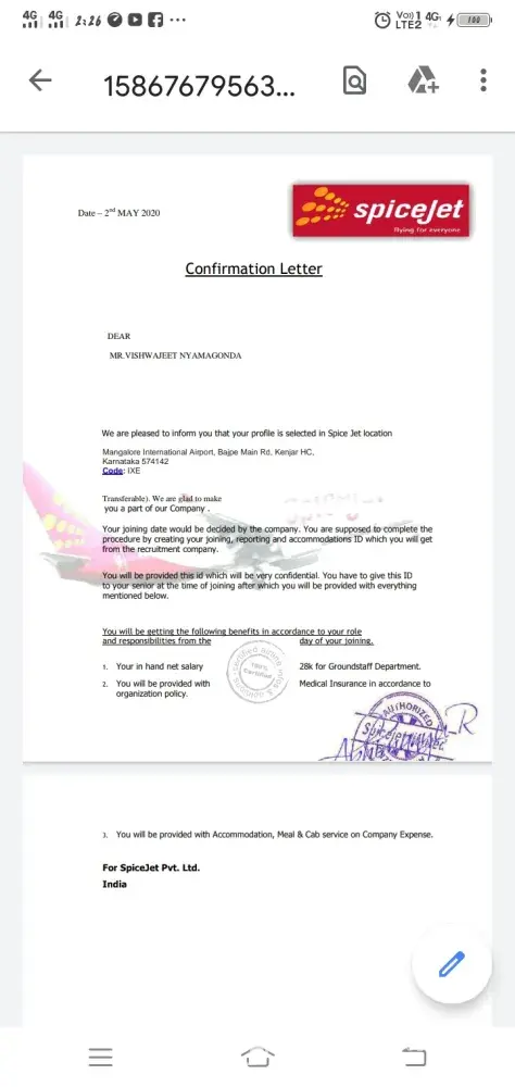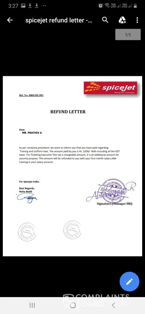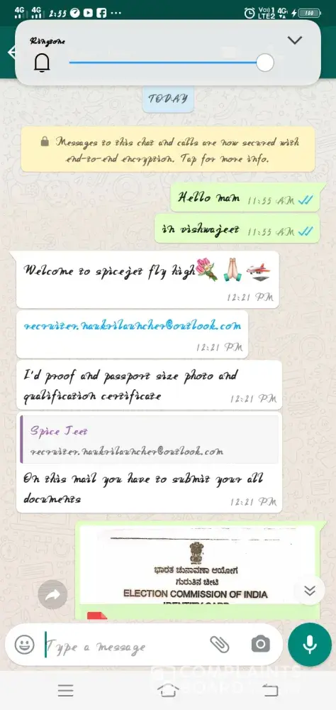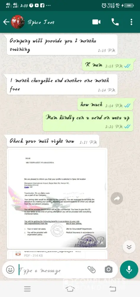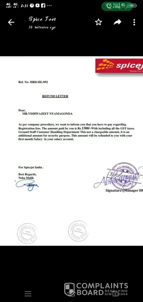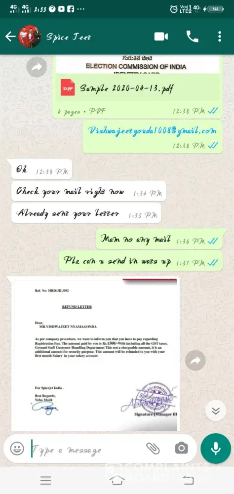 I've lost about 5000 rupees for getting fake call letter from spicejet through an lady calling from kempegowda international airport bengaluru telling that we're hiring an ticket executive job at spicejet And also she emailed me refund letter, confirmation letter and training letter I've paid total 5000 to this fake recruiter