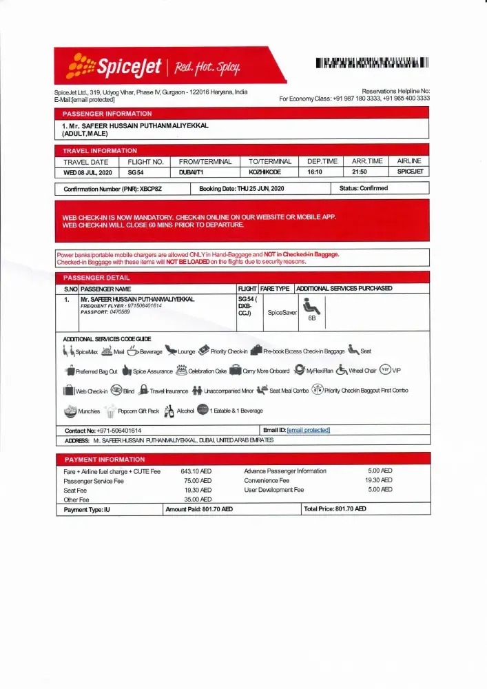 During the covid19 pandemic, my brother was stranded in uae and I was trying to get a air ticket for him from dubai to kochin, kerala., india.