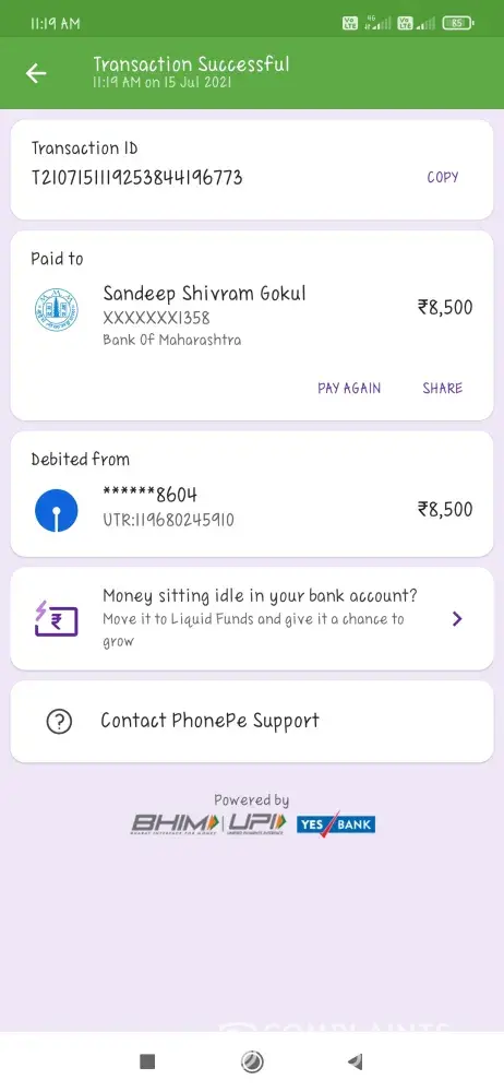 Interest. And I paid I came to know that it was all fake I'm from poor family my father is farmer so plz help me to get back my money refunded which is took from money lenders with interest