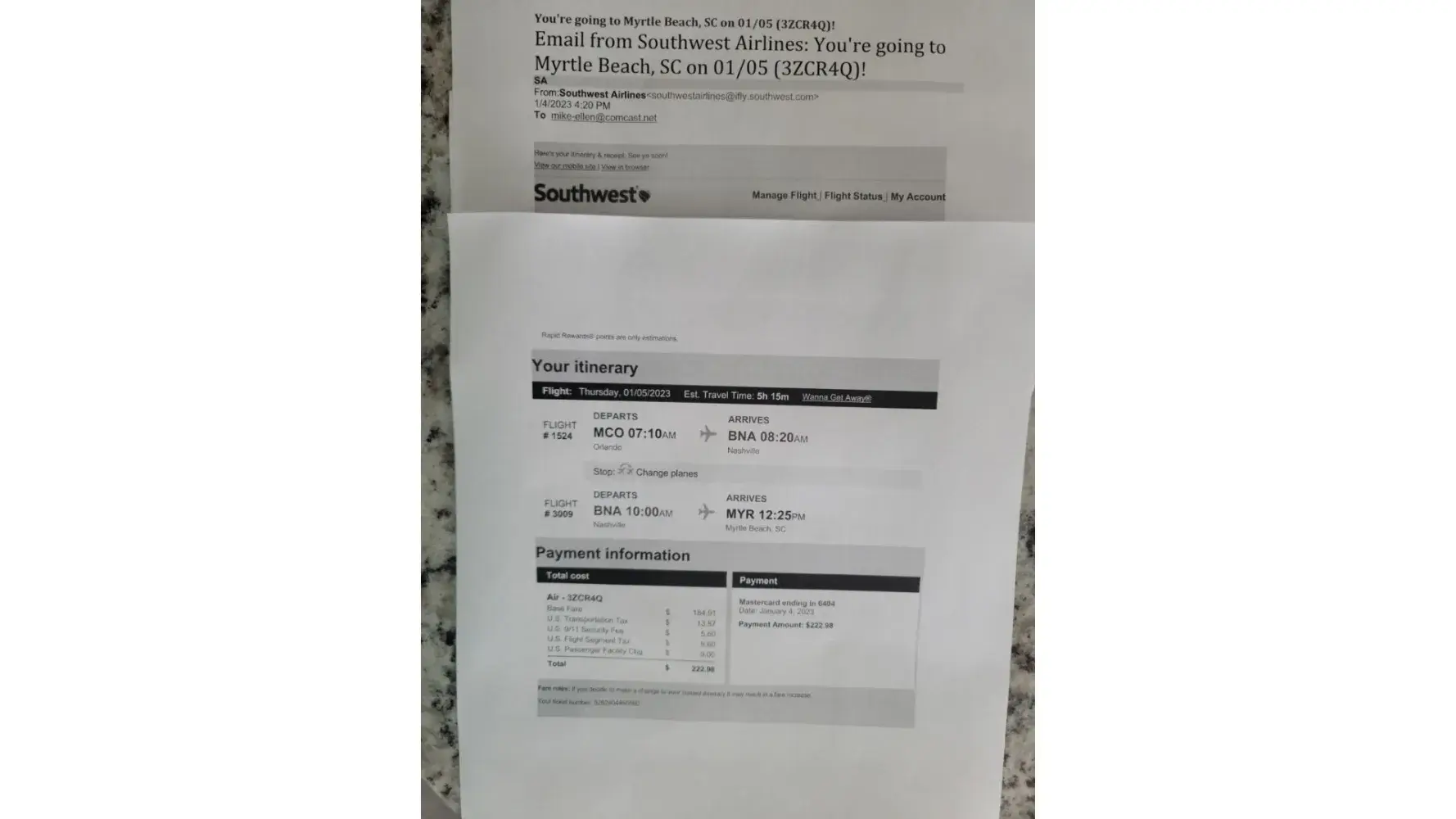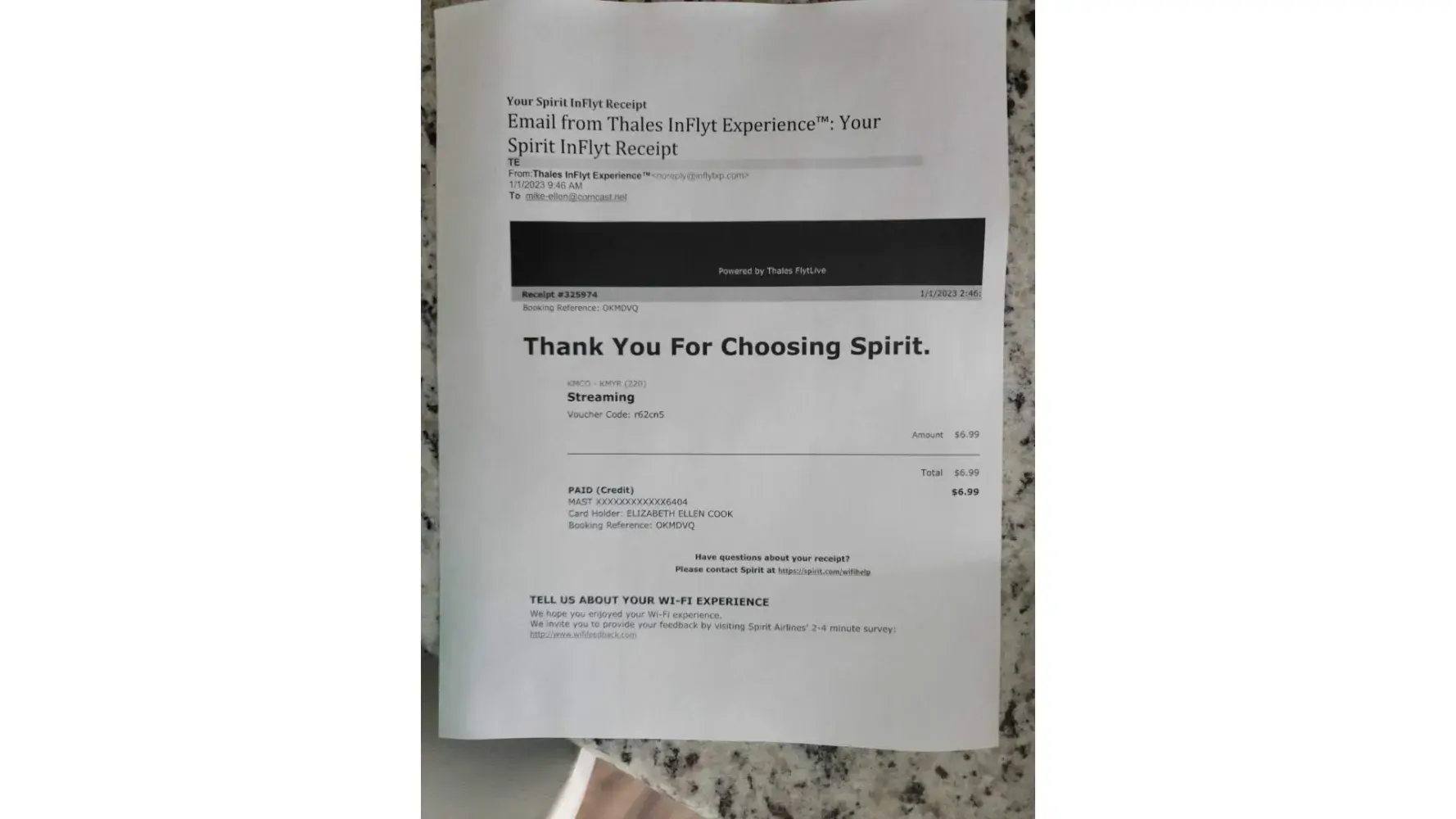 I ended up having to book a flight home for the next morning on Southwest. I had to pay for a taxi, hotel and meals in Orlando on Jan. 4th, and an extra parking day at Myrtle Beach airport since I didn't get back until the 5th. I have enclosed receipts for all of this. And, to rub salt in my wounds, I got an email from Spirit Airlines a month later, telling me that I would be getting a $95.55 refund. I had also paid for WiFi on the flight, and nothing was even mentioned about refunding that! That receipt is also attached.