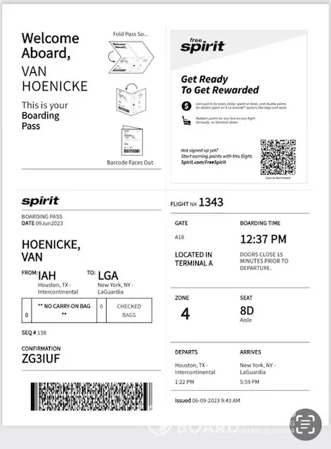 I was flying out for Houston to New York on June 9. 2023 on Flight Number 1343