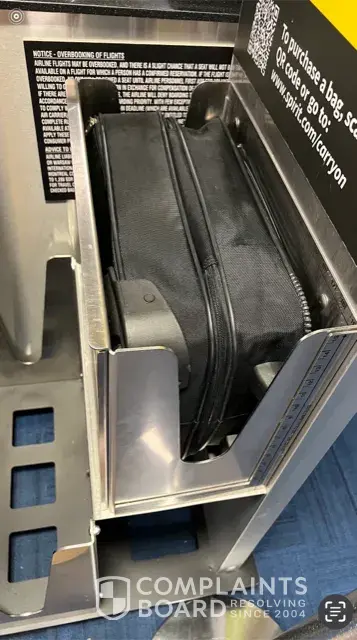 The plan was late for 5 hours and did not depart until around 6:00 pm. When I boarded the plan, i have a very small briefcase and a small purse, When i was told only one item was allowed as personal item, I then was able to put my purse in my brief case. My briefcase fits inside the case you have at the airport for ,personal item. To my suppise the attfndant still made me pay the 99.00 Fees and said " You want to pay or you can not board the plane " Since I was tired for waiting 5 hours at the air port, I did not want to argue any further and pay.