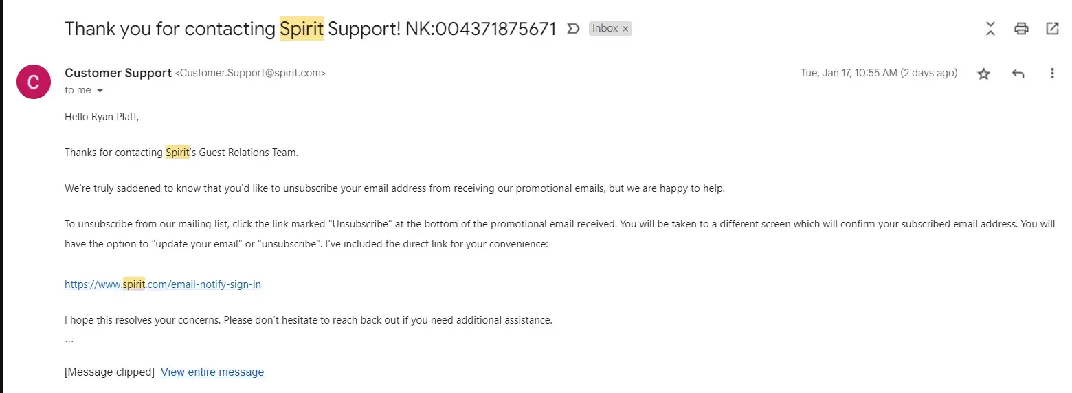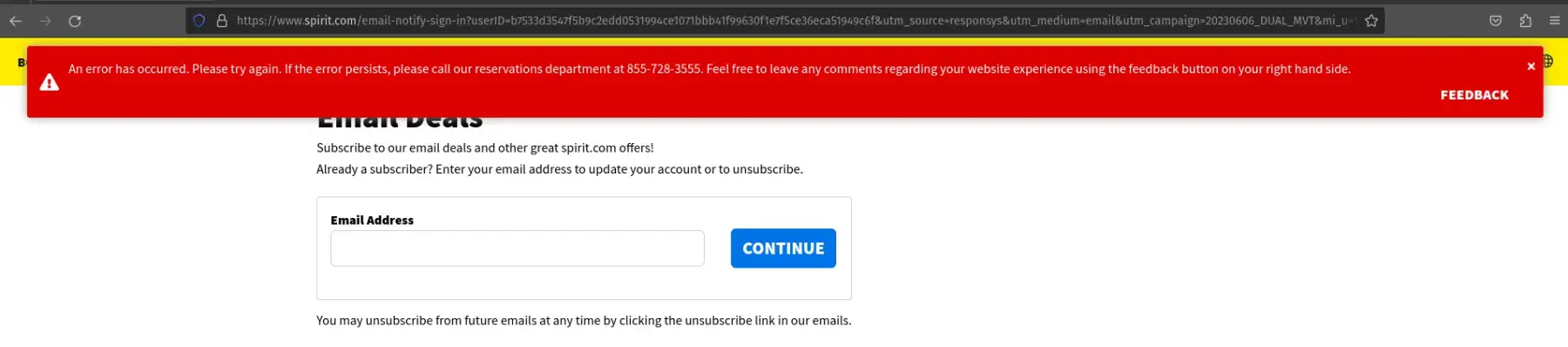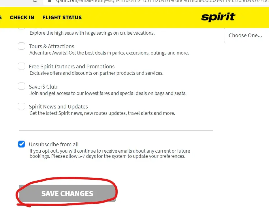 Spirit Airlines Spirit does not allow unsubscribing from spam