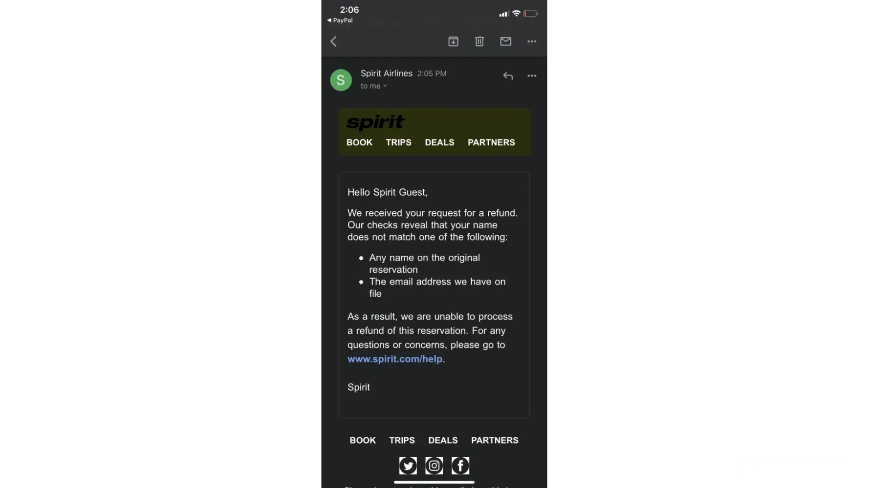 Spirit Airlines refund
