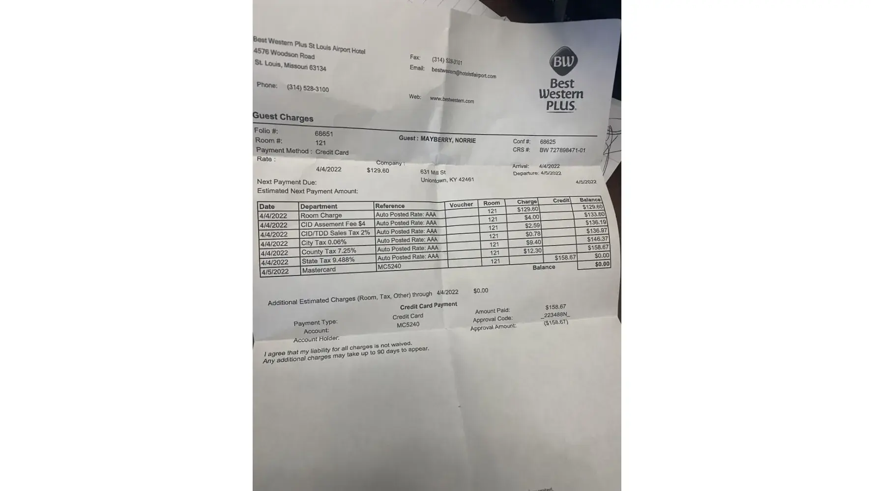 Desired outcome: Return my $65 charge that was erroneously applied.