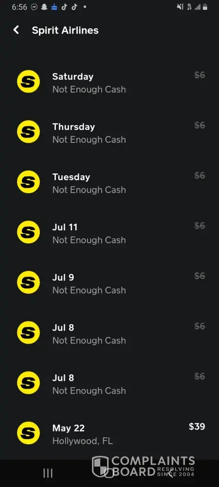 Hello my name is Laketa, my last flight with you guys i purchased 2 bottled water(Dasani) for total $6. From then Spirit has been trying to take $6 since . No money is purposely not put on the card since this has been happening. PLEASE HELP...THIS IS NOT RIGHT. I'm not on board of any flight since I've returned July 11, 2021