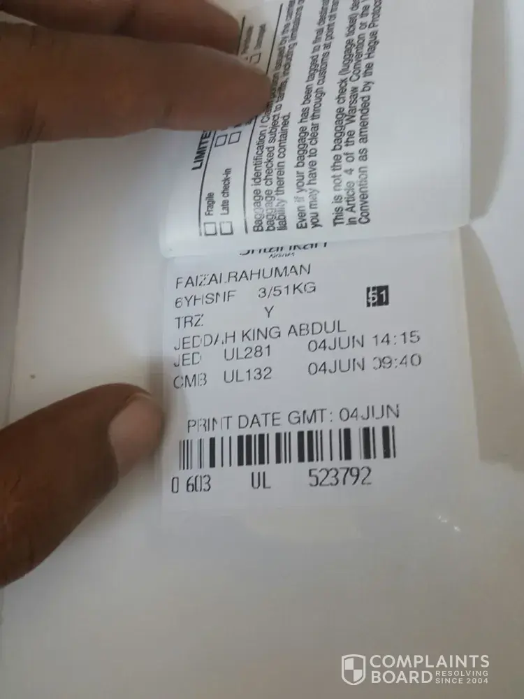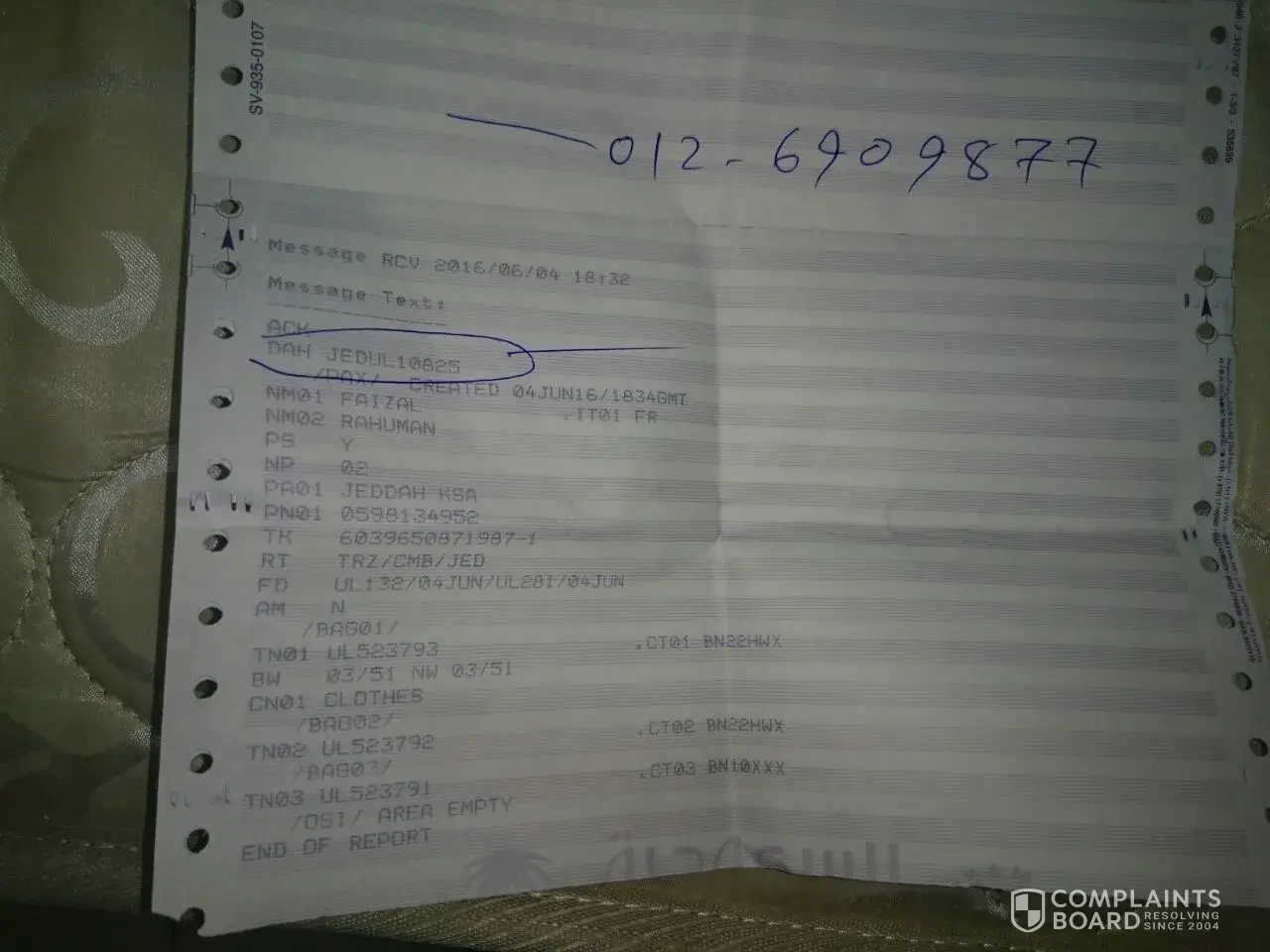 I am Faizal rahman day before yesterday i traveled with my trichy to jeddah, i didnt receive my luggage i wasted more than 4 hrs in airport finally i upset and make complaint to the concern person he told it will be received on 6 to 12 hrs, but still i didn't received any update in this regards, so i requesting here kindly solve my issue because my cloths all are in that baggage .