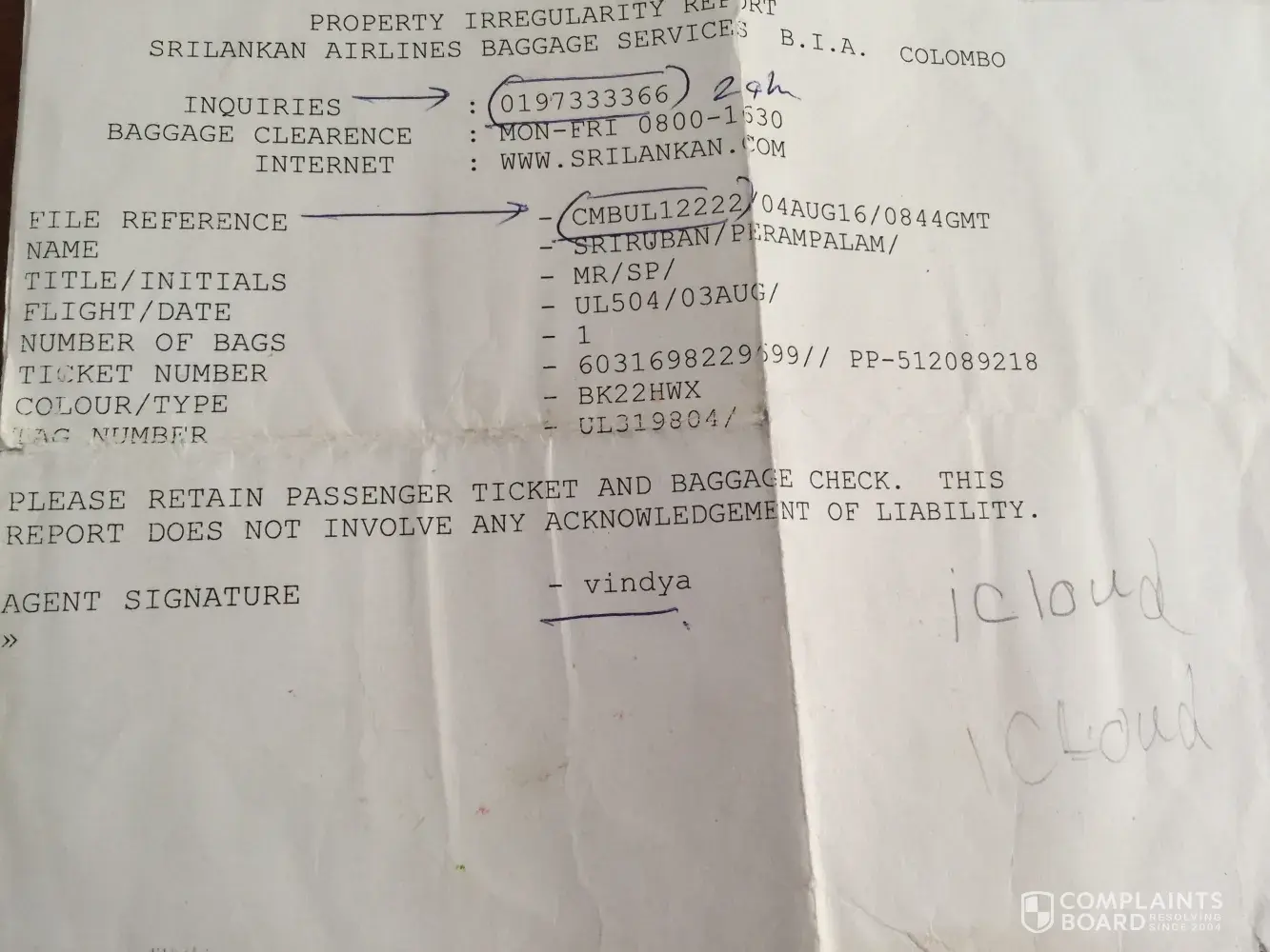 I went to sri lanka with my family on 3rd of august 2016 there is one of my bag was missing I have reported at the airport i was waiting long time still i haven't receive the bag there is very important think are in the bag