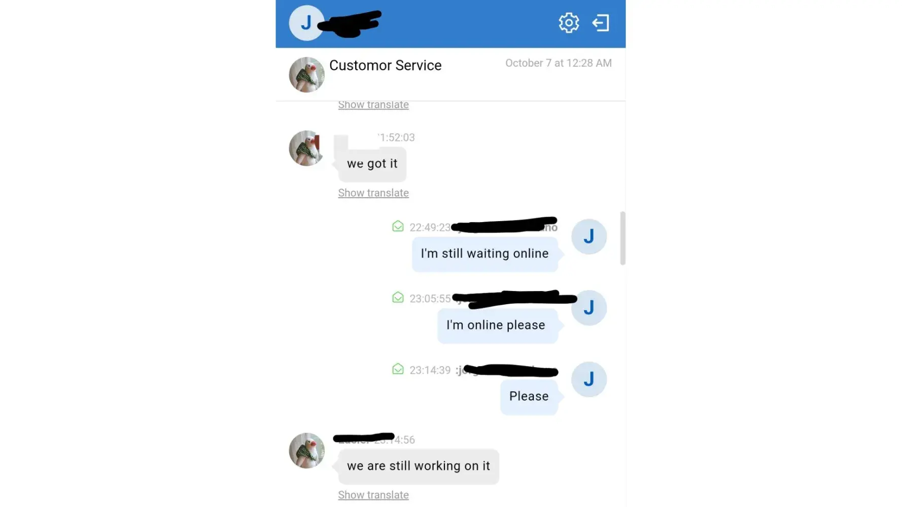 Evry time I speak to them in their online customer service they just say "plz wait a bit longer..."