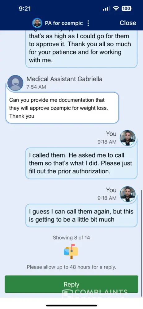 I didn't hear from anyone on Wednesday so I, again, had to make the phone calls. I always reminded them to call me, I told them I don't want to login to look at messages or get a text, I told them again that I want a call back because I want to talk to them. They repeatedly failed to honor my simple request. I had to keep calling because no one was calling back when they said they would. They would keep telling me "we sent you a message, go login"