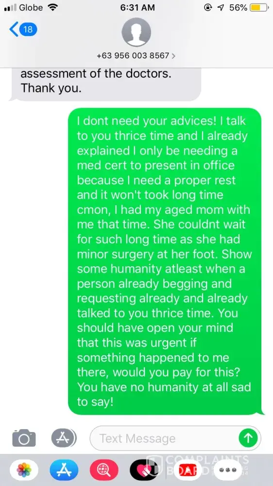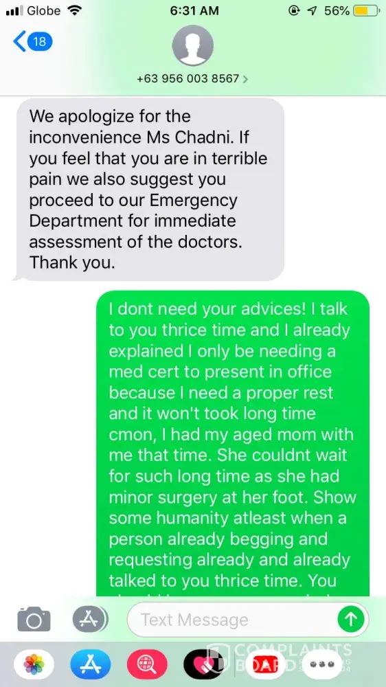 In my case, Tes already said I was on number 10th and when I came back then its 16th already? She inserted 6 patients without my knowledge. When I tried to seek help with your poor service of HMO DEPARTMENT, they couldn't help me because they were keep ignoring my emails! Until now no one is bothering to reply me even the concierge, and other departments are in CC, still there is no response as they are running out from my concern and the incident happened.