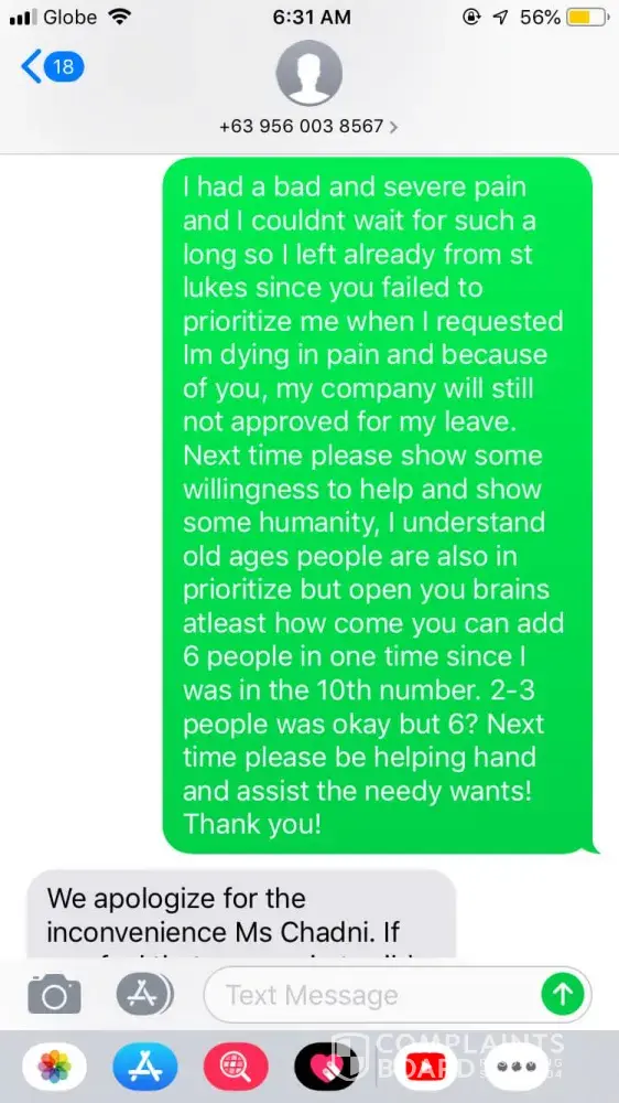 Read full complaint7 St. Luke's Medical Center Philippines Complaints