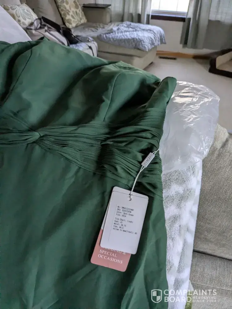 Asked for a refund with photo proof within the refund policy of 2 weeks. They offered to make custom size dresses for an additional £30. I declined. They can't do a standard UK size as ordered on 2 dresses I'm not risking another one and being further out of pocket.