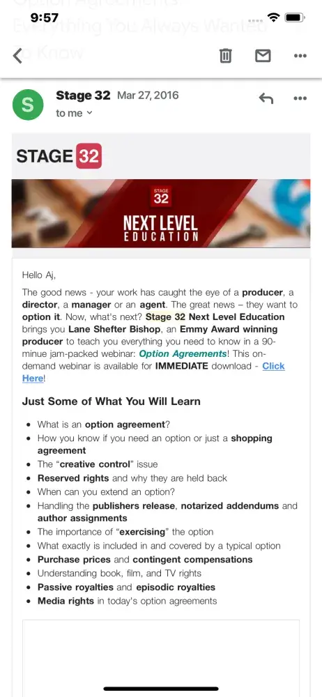 Then in March of 2016, I recieved an email stating that one of my "works" had caught the "eye of a producer" and advised me to join a webinar to learn about taking the next step, a guide to "option agreements, reserved rights, purchase agreements, contingent compensations, passive royalties and episodic royalties".