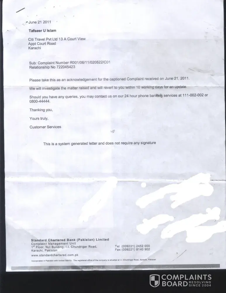 Sc is proved is worst bank in pakistan. especially their customer support department is full with ill manered and mentaly corrupt staff. who do not know how to talk with the customers.