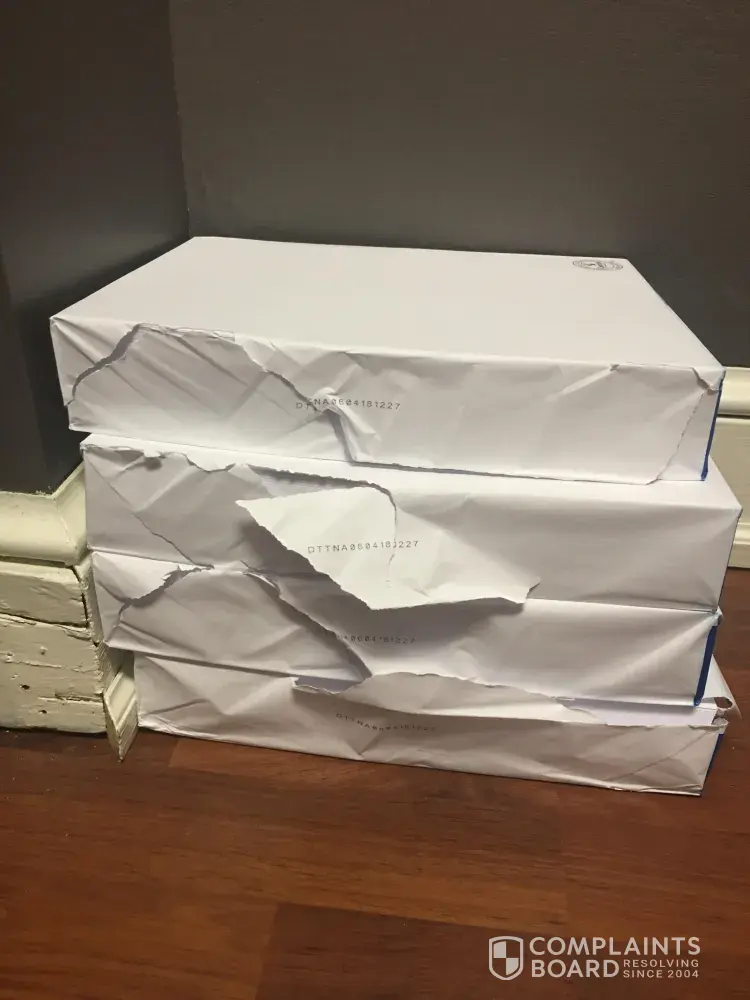 I received the two cases of paper that I ordered today (6/21/18) and every single pack of paper, including the boxes, were torn open. The packs of paper were still inside the boxes, but it looked like they had been very mishandled. The paper is still usable; however, the outside packaging is shredded and will have to be stored a certain way to ensure that the paper is still usable. My order number is 9788170459. I would like for this issue to be addressed. Since the paper is still usable, I don't think a return will be necessary, but I would like to know if I could get some form of discount for the next time I shop with Staples. Thank you! For any further contacting, my direct email address is [protected]@medtecllc.com.