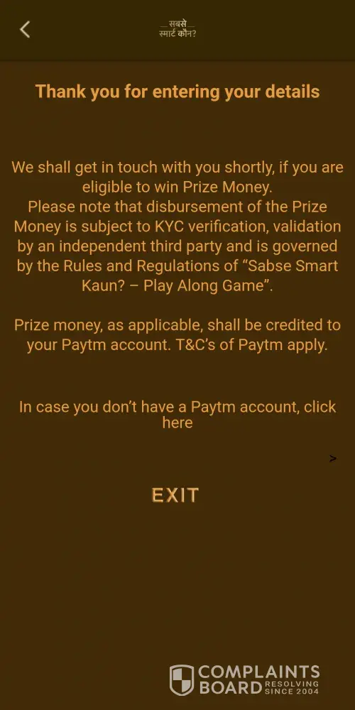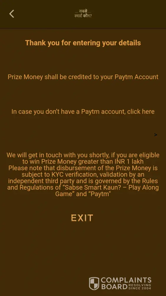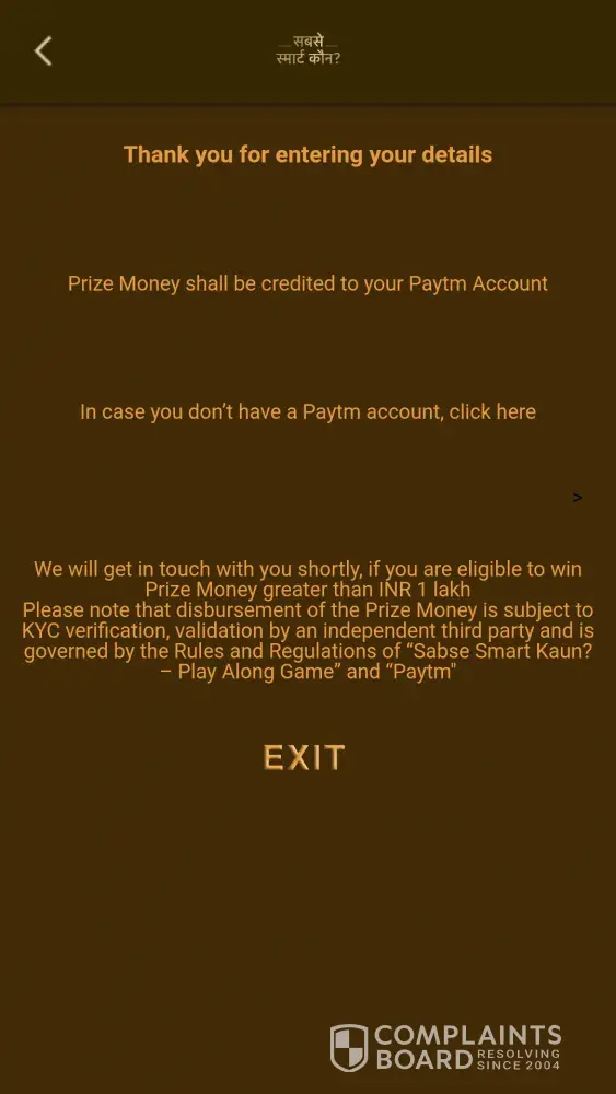 Hi every day I am play subse smart kon game show and every day I am scoring 38000 above but I am not get any amount please confirm its real or fack why we wast our time for your trp please confirm us when we get our price money
