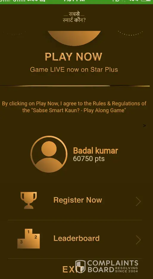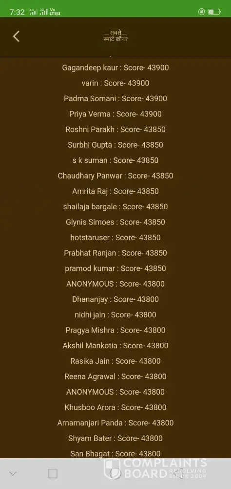 Thanks for providing this platforms. Where we can raise our voice against this Sabse Smart Kaun GameShow Strategy that they are only providing winning prize to those people who are able to manage highest points on the Hotstar App. They should provide some winning prizes to top "ten highest scorers" or "twenty top highest scorers". So that people can rely on it and can play more passionately.