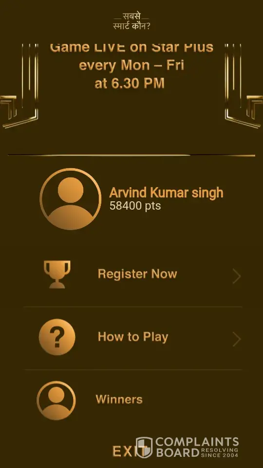 Hi I am playing sabse smart Kon from the first day some time my score is 40, 000 some time 59, 000. Mr. Ravi said in show please play in host star and get many lacks but I think this is not true they just just want us to watch this show and waist out time I saw on you tube and google about how u calculate ur score if some one get more then 60k that will be eligible for one lakh but I got more then 60 k still no reply nothing. Every time I get good score and on 19 July 2018 I got 60, 600 but until now I never receive any price money please help me to reply me about my price