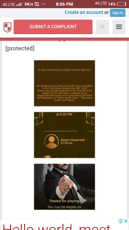 Hello, this is to inform you that yesterday I played online game sabse smart kaun and I won 6800points now I want to get my prize and I don't have paytm account so I am very much tensioned how can I get it.. My email I'd is [protected]@gmail.com...
