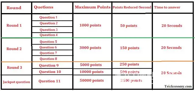 Such a bakwas game. Entire game is fixed or may be fake people are getting 15 lakh sitting at home. People score points like they don't read the question and just do a touch. For me sometimes my time just starts with 5 sec or 0 sec and I couldn't able to mark the answer. Sometimes I can't able to submit answer due to some technical issues. Really fake. Just wanted to increase TRP and making people fool.