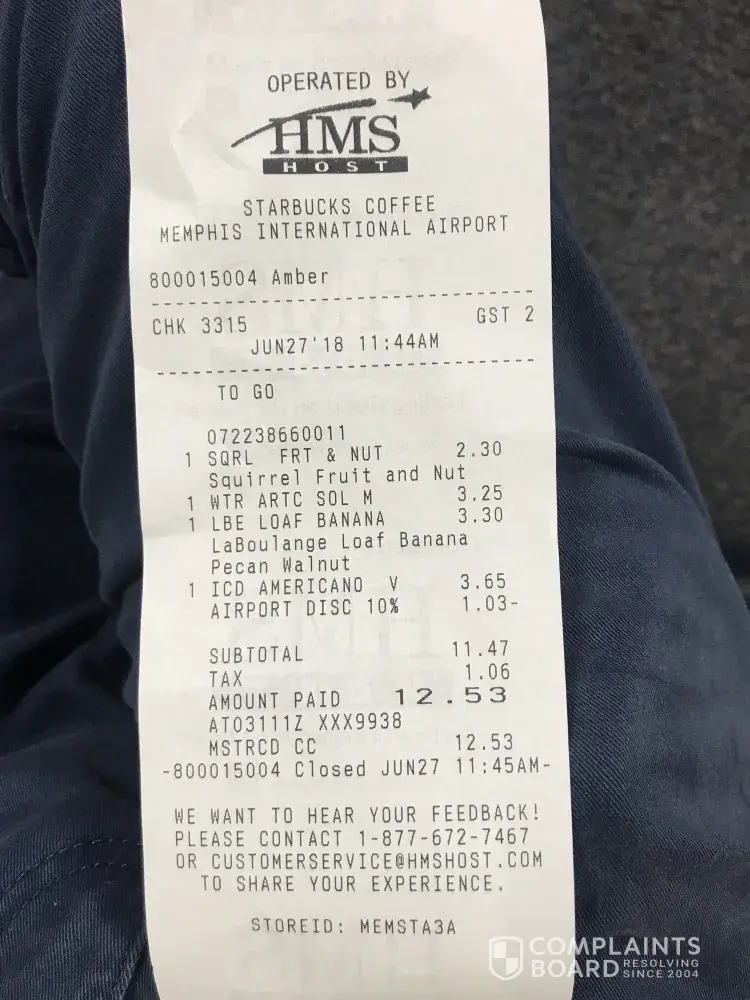 I am writing a complaint on one of the employees at starbucks john wayne airport, her employee # is 329679 amy.