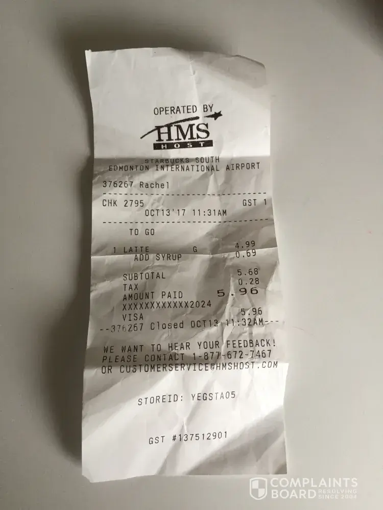 Starbucks starbucks customer service at edmonton airport