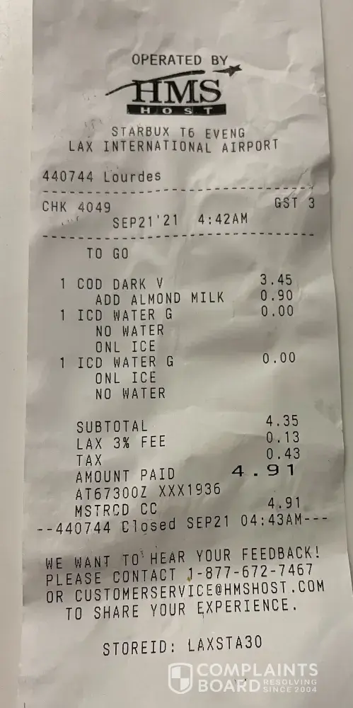 3) Barista/Cashier didn't let me know there was an additional charge of $0.90 when I asked for Almond Milk