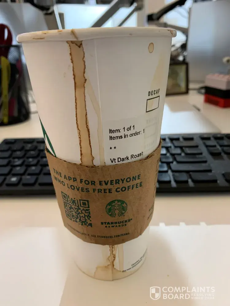 I understand the shortfalls of drinking from disposal cups — please don't feel you need to explain. Starbucks coffee cups are sub par. I've had gas station coffee (Caribou at HyVee) served in leak free cups. This morning I got yet another Starbucks cup with a soaked seam and a lid that didn't "snap" tightly. I am wearing white, so... do better please? I've been drinking Starbucks black coffee for 15+ years. I know the cups haven't always been so flimsy.