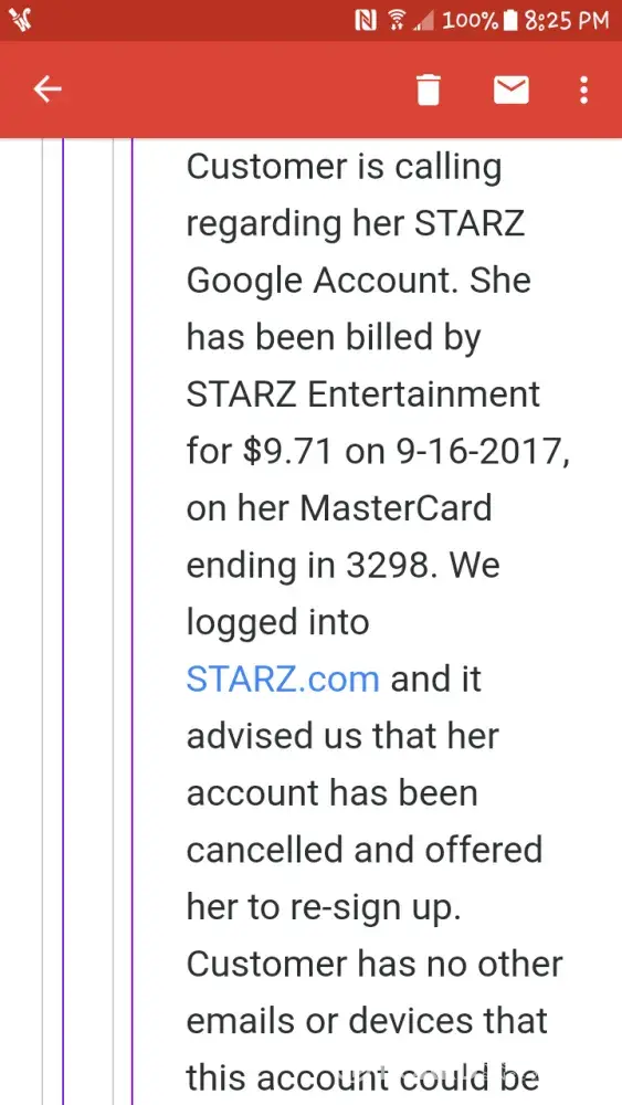 Starz Entertainment I cancelled my account before the month ended they charge me