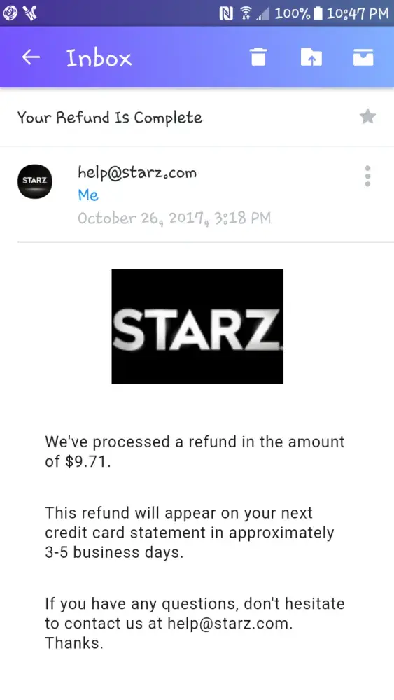 I was wondering if I could get a refund. I was trying to resign up for Starz to get it for $0.50 a month and that work successfully so when I downloaded the app it told me to subscribe again and I did and I thought it was just going to automatically apply the $0.50 but it ended up charging me for for $9.62 so it's charged me twice for the same account basically it so I was wondering if I can get the $9.62 refunded back on my card
