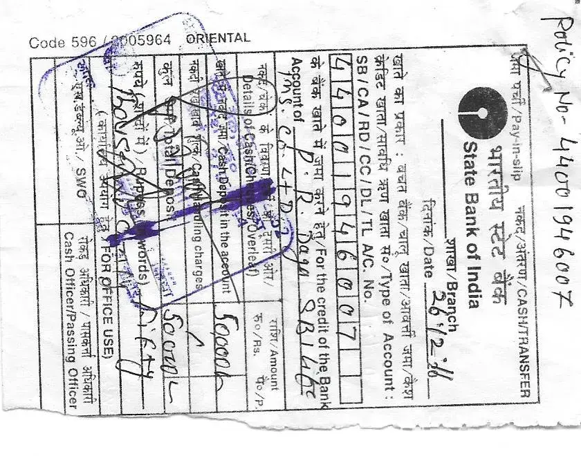 I am a sbi customer at jogbani(dist araria) branch account no [protected]. I had deposited 50000 twice dt 26.12.2011 and 17.2.2012 on behalf of my sbi life premium policy no [protected] but this amount never got deposited into my account due to fraud done by one of the bank official. I have the deposit slip signed and stamped by bank. I had submitted innumerable complaints regarding my money for which i didnt get any satisfactory reply. I also submitted my complaint to zonal office in purnea but nothing has been done. Its been more than 3 years where my money has not been credited. Bank says we have no idea of it. I would request you to please look into the matter and help me get me money back along with interest.