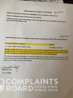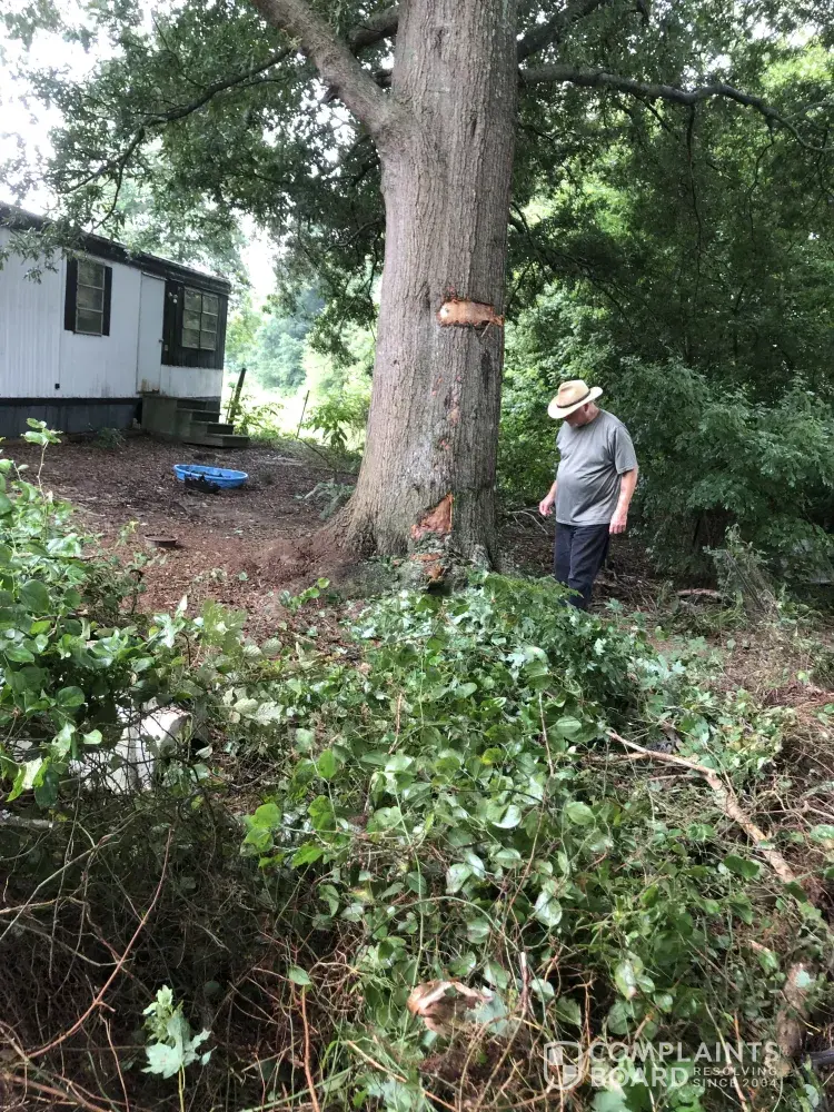 In the documentation I sent I express my concern that the damage may cause the tree to rotten or die later and what was my recourse. I never received any communication from State Farm. They sent me a check for part of the damage. With no explanation. On 8/18 I sent them and email and again on 8/24 about the open issues of the damages not paid and the issue about the oak tree. On 9/21 after not response to my email I resent to the Claims website under my claim#. 9/16 the claims website still shows it assigned but not actions taken. I called State Farm and spoke to an agent and after being put on hold for a while was told I needed to get someone to come out and treat the tree and that they would pay the addition items they did not pay for on the original quote. I realize my complaint my seem petty but I am the victim. This is a company that does not communicate and could care less about being fair to the person that their insurer did damage to. Our damage accrued on 8/1 and it is now 9/16 and our claim is still not settled. We are not talking $10, 000.00 our materials and labor total was $1672.00 and some amount or agreement to the damage of our wonderful Oak tree. I cannot imagine having to deal with this company on a back wreck.