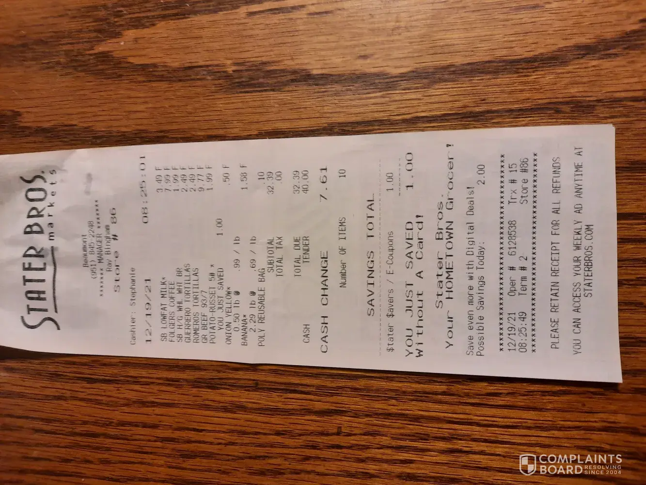 Desired outcome: Stater Bros corp to contact me and investigate my complaint