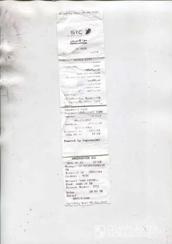 I reached Jeddah airport on 30th April 2016 for Umra, and bought three SIM cards from the airport in my name (Raja Khalid Iqbal) and in the names of my wife (Zahida Khalid) and son (Raja Abdul Moiz Khalid). i. [protected]. ii. [protected]. iii. [protected]. STC staff did not inform me the ID numbers for recharging balance in the SIM cards for which I had to face lot of problems later. I visited STC office near the Haram at Makkah and the staff gave me the ID numbers. But one ID number for sim No.[protected] did not work however they uploaded some amount in my SIM card. Again I visited STC office in front of Haram Pak at Madinah for recharging 20 Riyals in my No. [protected] on 07th May 2016 they people gave me a receipt and said that after 24 hours I will receive the balance in my SIM card. After 24 hours, I again visited the office and told them that I had not received the balance. They again asked me to wait for another 20 hours. On the next day after 20 hours I approached the manager and told him my problem. He checked the system and informed that 20 Riyals were credited to some other number. I told him that this was not my fault but he did not listen to me.