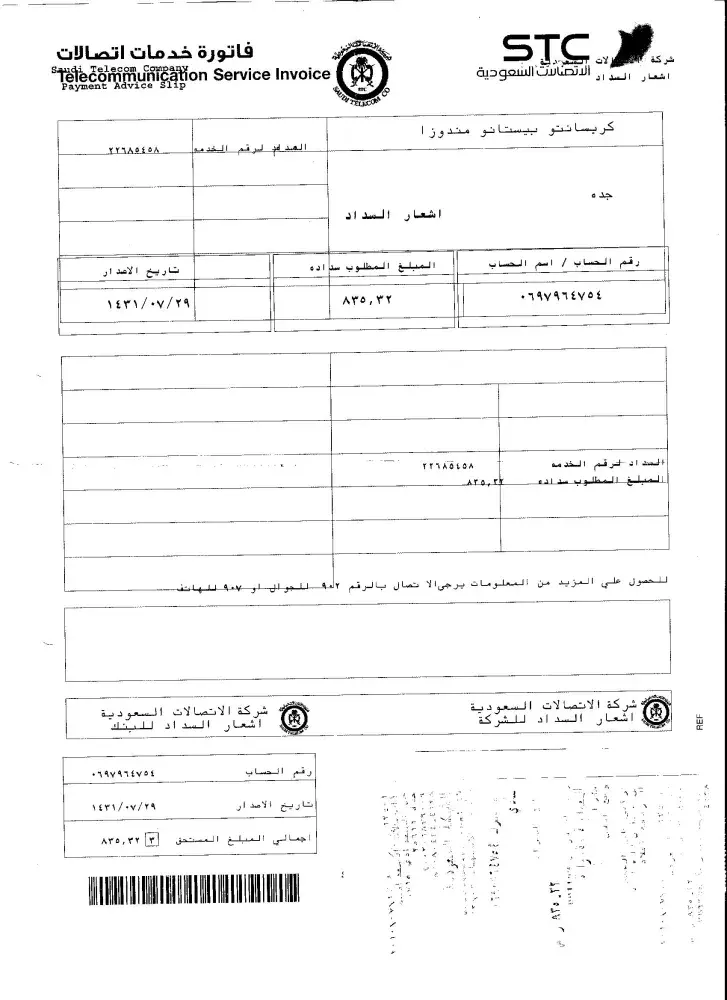 Sir I have use an Stc postbaid sim monthly 170 sr but I am not baid for 3 months internet conscience cut services after I'm not baid Bill and 10 months so Bill amount bay time eanypady fine baying