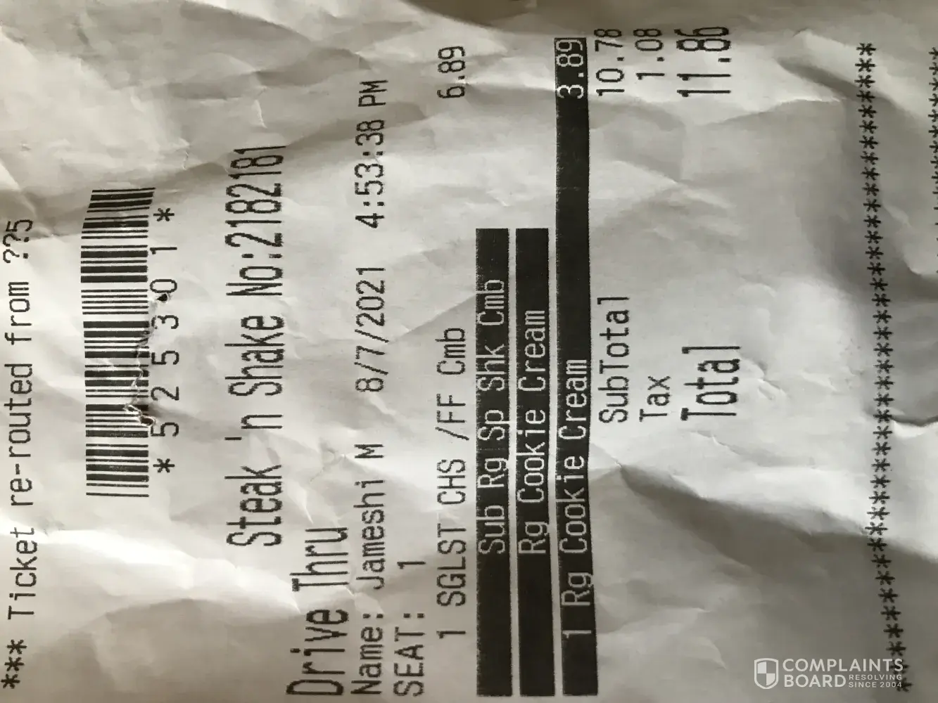 See pictures below just got this from steak and shake Daytona beach fl. REALLY!