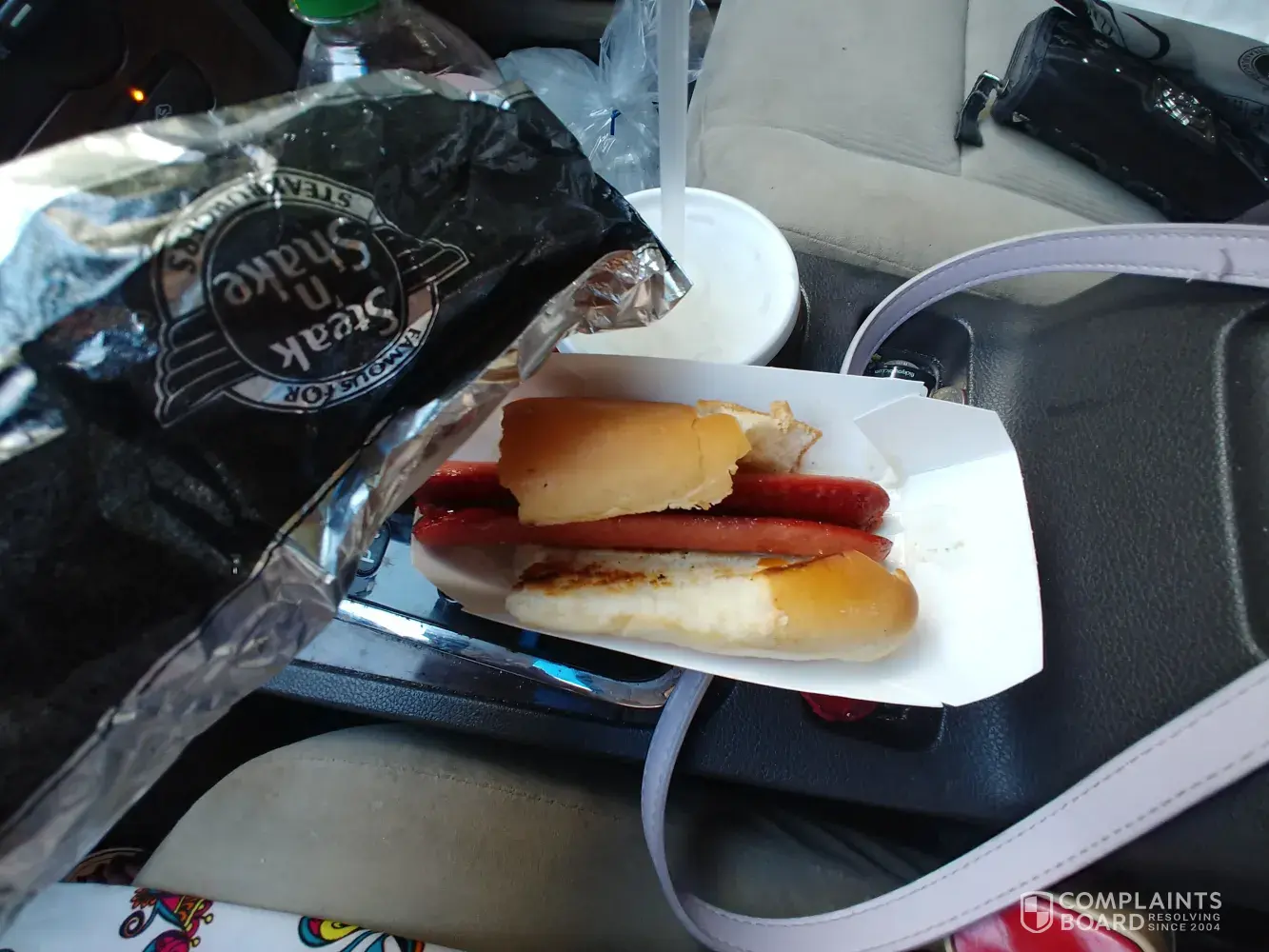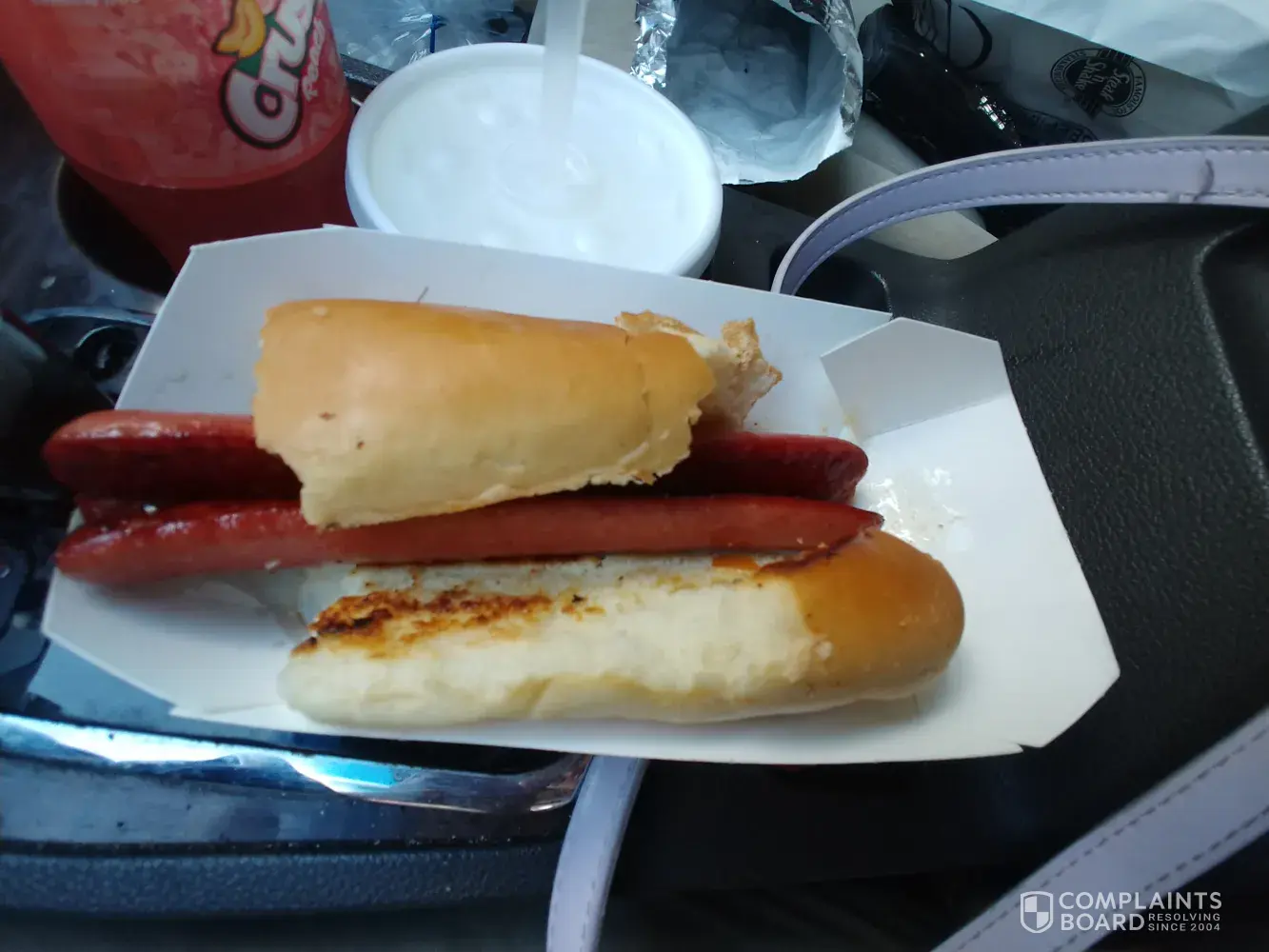 This is the worst food i have ever seen served from a fast food. Not only was the entire hot dog cut in half; it literally looked as if someone had already taken a bite out of the bun. This meal was for my 3 year old daughter and it was very unclean to receive in this manner.