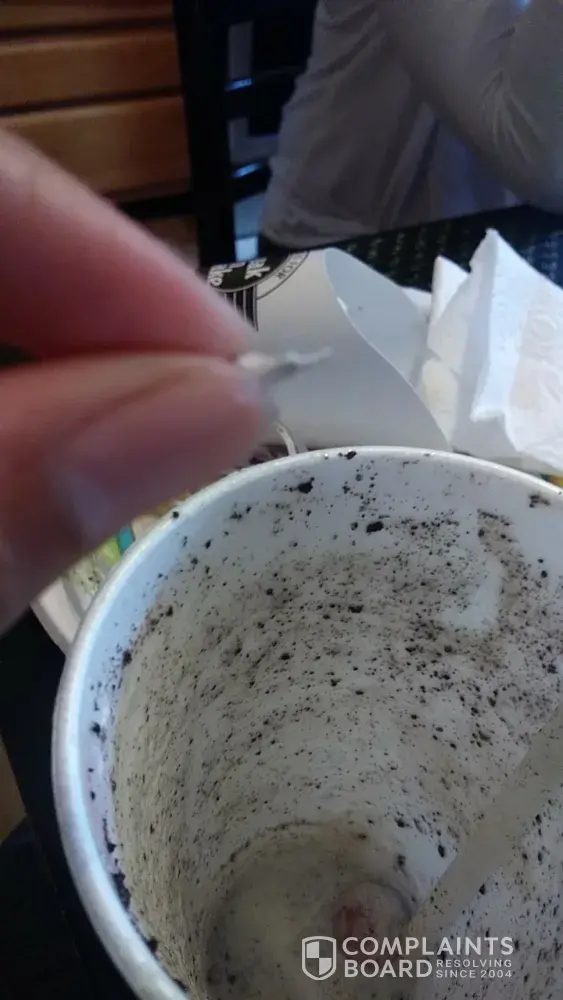 I order a oreo cookies and cream milk shake and as i get to the bottom of my milk shake i sucked up a hard piece of something not sure if it from a spoon and blender... Im so glad i had to chew up the oreo or i would of swolled it and if it went down the wrong way it could of cut my throat... This could of been a child and really did some damaged.. I still have the receipt and the cup with the thing inside it... Please contact me i work night so this was my lunch...