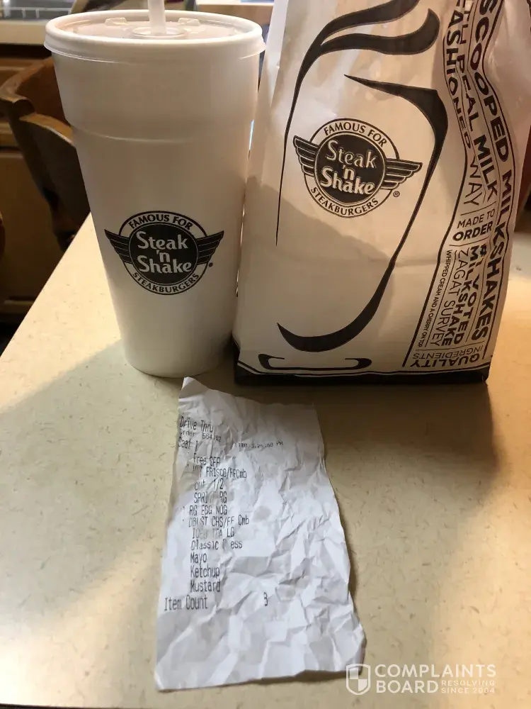 Lastly, on March 8 I received a call from the Steak N Shake complaint line from a young lady who I do not recall her name and she took a report but I have not heard back from her and it's been over two weeks.
