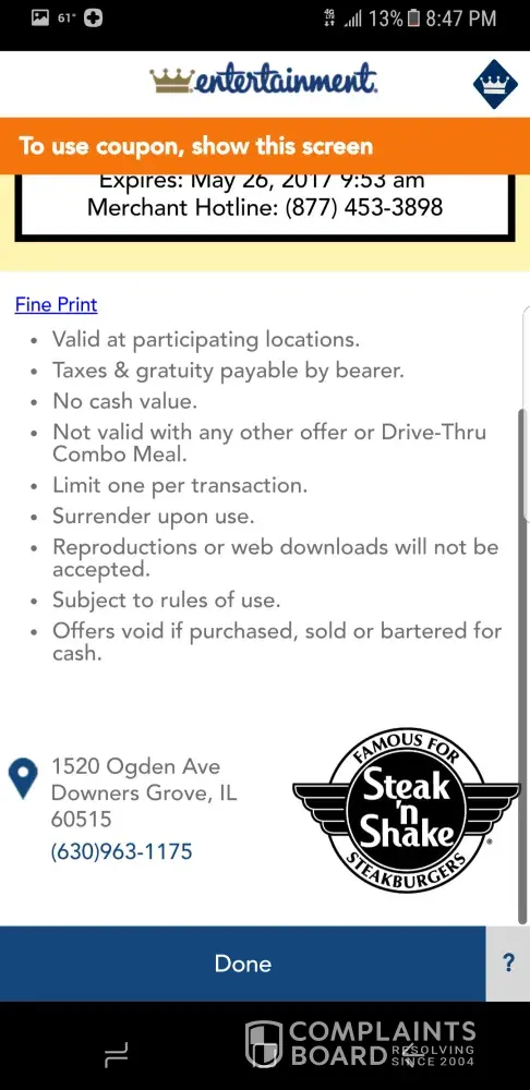 So i had a coupon for free onion rings i ordered my food and when I went to the cashier she told me ive never seen that coupon before. The coupon has the address of the steak and shake i was at. And she was staring at me saying ive never seen this i asked her to validate the address she said yah it's for here... And would not give me the onion rings! That's rediclous ! Attached is pictures